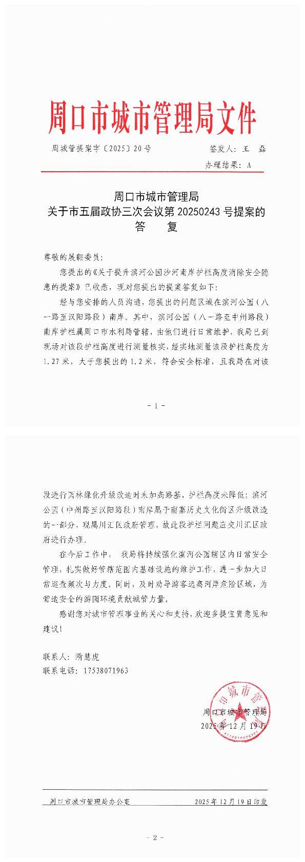 周口市城市管理局关于市五届政协三次会议第20250243号提案的答复