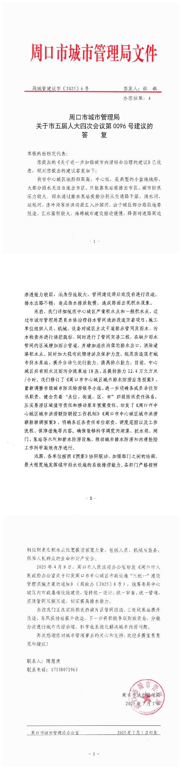 周口市城市管理局关于市五届人大四次会议第0096号建议的答复